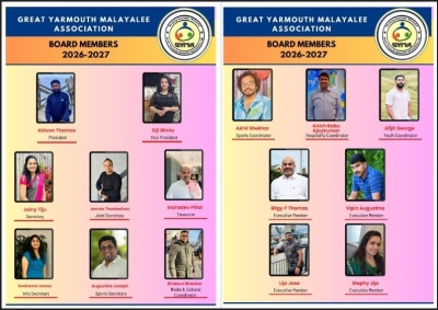 ഗ്രേറ്റ് യാർമൗത് : യു.കെയിലെ ശ്രദ്ധേയവും സജീവവുമായ മലയാളി സംഘടനകളിലൊന്നായി,കഴിഞ്ഞ 20 വർഷത്തിലേറെയായി പ്രവർത്തിച്ചു വരുന്ന ഗ്രേറ്റ് യാർമൗത് മലയാളി അസോസിയേഷൻ (GYMA) 2026–2027 പ്രവർത്തന വർഷത്തേക്കുള്ള പുതിയ ഭരണസമിതിയെ തെരഞ്ഞെടുത്തു. ഗ്രേറ്റ് യാർമൗതിലെ പ്രശസ്തമായ ഓർമിസ്റ്റൺ വെഞ്ച്വർ അക്കാഡമിയിൽ വെച്ച് നടന്ന ക്രിസ്മസ് & ന്യൂ ഇയർ സെലിബ്രേഷൻ പൊതുയോഗത്തിലാണ് പുതിയ ഭാരവാഹികളെ ഏകകണ്ഠേന തിരഞ്ഞെടുത്തത്.